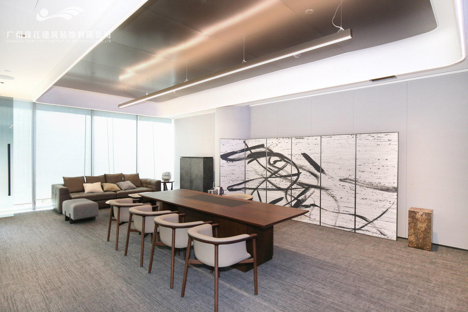 海大科学园的建筑外观采用现代简约的设计风格,以玻璃幕墙为主,搭配金属框架,展现出通透、轻盈的视觉效果。建筑线条流畅,园内设置了多个功能区域,咨询台、休息区、会议室、展示区以及洽谈区等主要重点区域。